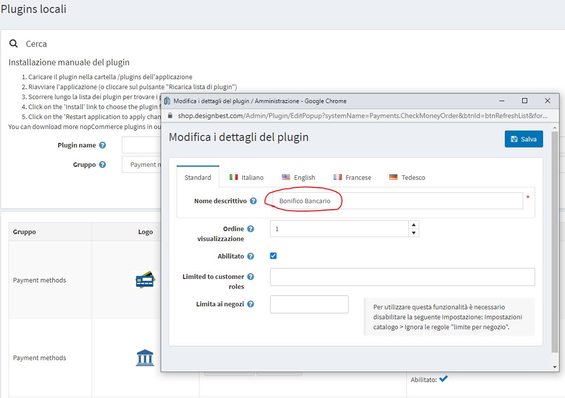 (da Configurazione/Plugins Locali) il nome amichevole del plugin viene utilizzato in message template delle email, si rende necessario modificare il nome con l'esatta stringa