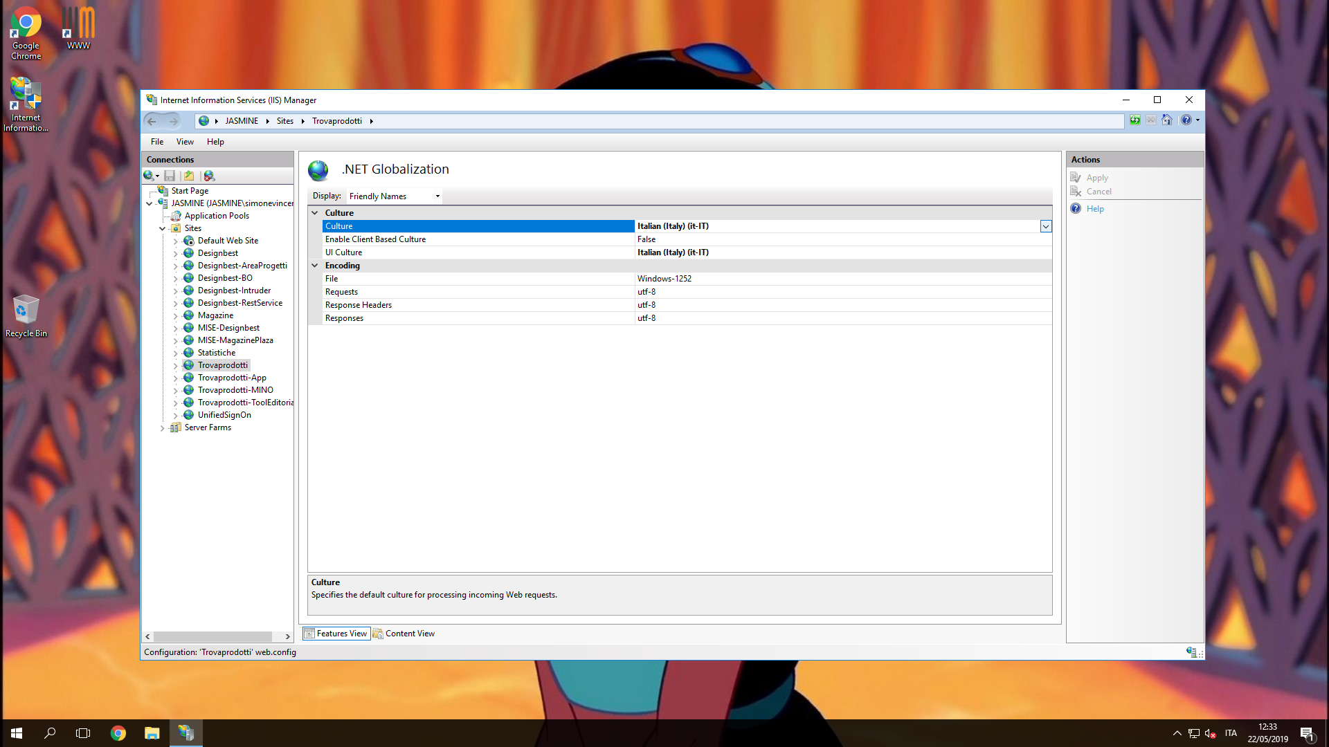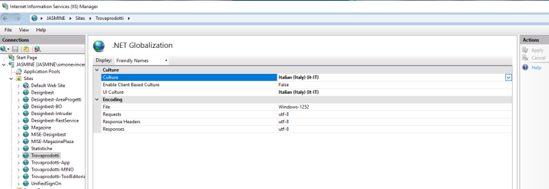 Impostazioni per cambiare la cultura del singolo sito web.